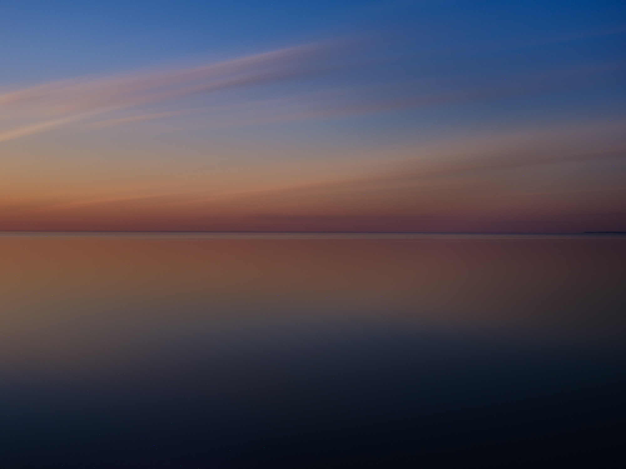 Using exposure times ranging from fifteen to sixty minutes, these photographs compress duration into singular images that capture something beyond what the eye can perceive in any single moment. The long exposures smooth the water into mirror-like stillness and blur the movement of clouds into soft, painterly gradients, creating scenes of tranquility.